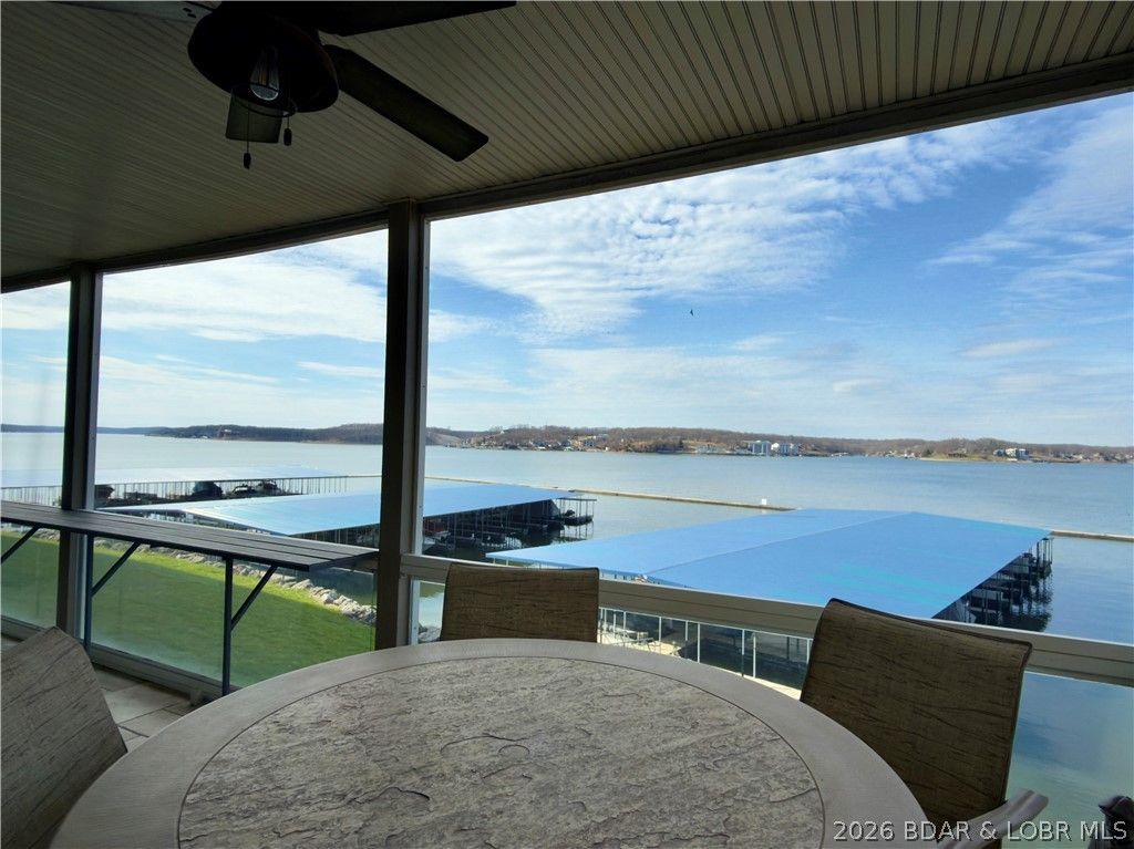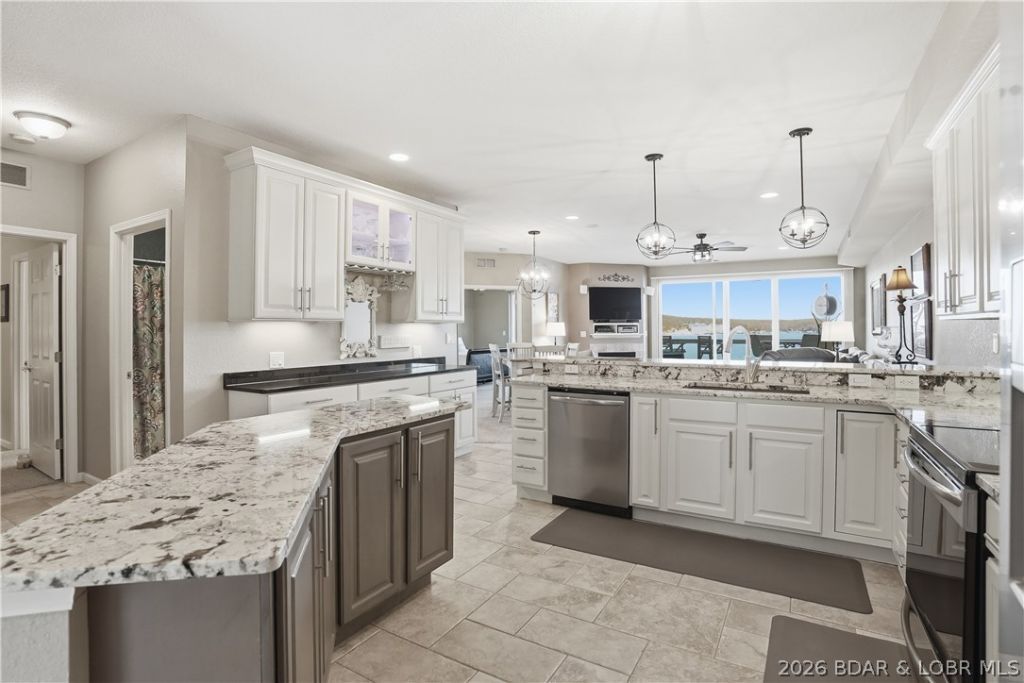 Stunning Lands End Condo! Spectacular 7 miles of main channel views w/breathtaking sunsets! Resort style complex in the heart of Osage Beach. Updated, End unit, 3 bed, 3 bath, over 1700sqft of condo space, spacious kitchen w/custom cabinets, granite countertops, stainless appliances, island, & bar counter/cabinet area. Sprinkler system in condo, propane fireplace, expansive lakeside screened deck w/bar ledge seating, dining area, conversation seating & storage closet. Master suite has slider door to lakeside deck, walk in shower, jetted tub, double vanity & walk in closet. 1 guest ensuite bedroom & 1 guest bedroom w/hall guest full bath give ample room for the comfort of many guests! Laundry room w/ full size washer/dryer & cabinets. Elevator access. Lands End offers a beautiful club house, fitness center, lakefront cove pool, lazy river, splash pad, sports area etc...it has it all! Located on the 19mm, Lands End is in the heart of the action..by land & by water! Close to upcoming Oasis at Lake Point Amusement park, Outlet mall w/upcoming Bass Pro Shop, Dog Days Bar & Grill, Jets Trampoline Park, Miner Mikes etc...*Investors Dream*Vacation Rentals are allowed! Lake life perfection!