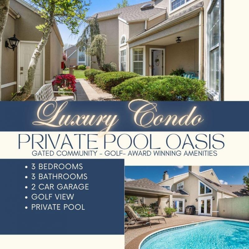 Want to have it all? This Luxury, Condo-Townhouse is located inside the prestigious gated community of Pointe Royale, a 3-bedroom, 3-bath offers the rare flexibility of personal enjoyment and nightly rental potential in an approved nightly rental community. What truly sets this property apart is its private swimming pool with a fully fenced privacy area, creating a secluded outdoor retreat that is perfect for entertaining or unwinding. Even more impressive, this is the only condo in Pointe Royale with its own private pool, covered back deck, & overlooking the 11th fairway of ''The Pointe'' championship golf course; offering stunning west-facing sunset views. Inside, the home welcomes you with a spacious foyer that opens into a large living room featuring cathedral ceilings, a gas fireplace, beautiful windows, and skylights that fill the space with natural light. The main-floor kitchen is designed to impress, with black granite countertops, soft-close cabinetry, pot and pan drawers, updated appliances, a large walk-in pantry -- a true chef's layout. Exceptional floorplan with the Main Bedroom ensuite with everything you need on one level, the upper level is 2 more bedrooms and full bath. Storage is another standout feature, with a fully floored attic space above the oversized two-car garage deeded to the condo. (a rare find) Luxury details are found throughout, including a fully enclosed spa-style steam shower, quality cabinetry, custom craftsmanship, a coffee and wine bar, and an exceptional private pool entertainment area. Plus a home warranty included!Pointe Royale offers an unmatched amenity package, including 2 outdoor community pools , an indoor Olympic-sized pool open year-round, hot tub, golf, lake access to Lake Taneycomo, tennis courts, walking trails, a fitness center, clubhouse, playgrounds & more. This is a rare opportunity to own a one-of-a-kind property in one of the area's most sought-after community in Branson.