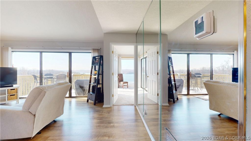 LAKE OF THE OZARKS - Panoramic Main Channel Views - Top-Floor End Unit - Start your mornings overlooking the water in this turn-key 2-bedroom, 2-bath condo with breathtaking main channel views. Located in a top-floor end unit, the home features vaulted ceilings and abundant natural light, creating a bright and spacious feel. Both the living room and primary suite open to the private deck, offering the perfect spot to enjoy lake breezes and sweeping views. The kitchen includes granite countertops with bar seating, ideal for casual dining or entertaining. Community amenities include two pools-including a lakefront pool with clubhouse-plus a playground and green space for pets. The complex also offers the rare convenience of free boat trailer parking. Recent updates include a newer HVAC system. Perfect for full-time living, a weekend retreat, or rental income, with easy access to nearby restaurants, shopping, and lake attractions.