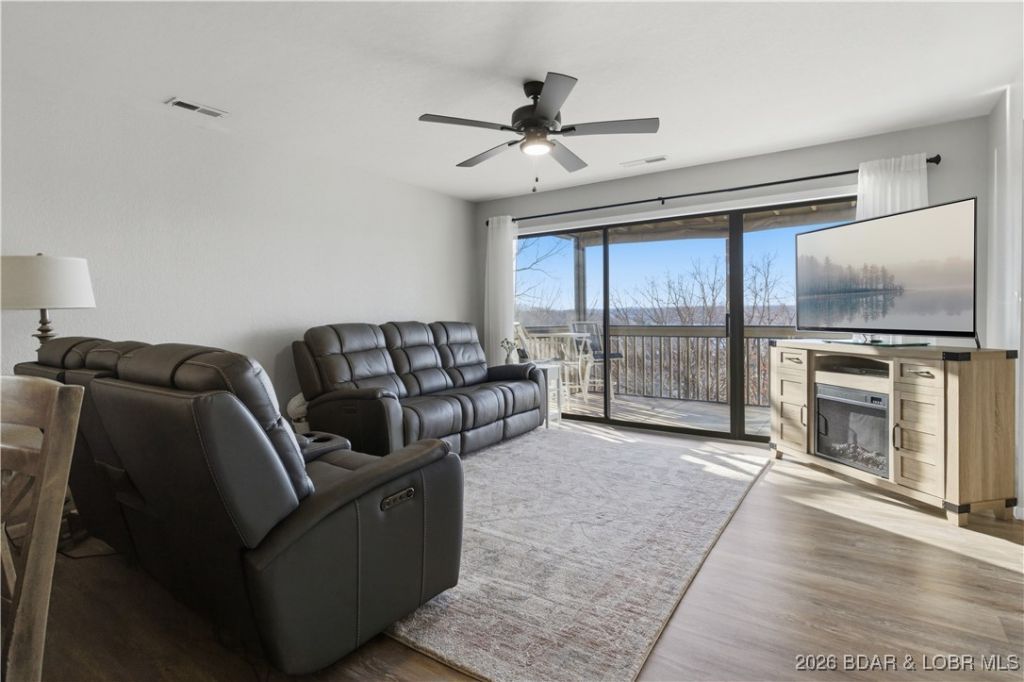 Lake life at its best! This beautifully updated, turn-key, end-unit condo offers everything you need to enjoy the Lake of the Ozarks lifestyle. Step inside to find an open-concept layout filled with natural light and tasteful updates throughout. You'll love the frosted grid doors, French doors to the laundry area, and crown molding accenting every window and cabinet. Enjoy morning coffee or evening sunsets from your screened-in deck, perfectly positioned with gorgeous views overlooking the 24MM of the Osage Arm. Plus you have your own 10x24 boat slip, making access to the lake a breeze! Various recent upgrades have been completed, so you can move right in and start enjoying lake life. The complex offers incredible amenities - two pools, boat trailer parking, a playground, a fire pit, and lush green space for your furry friends. This condo also includes a locked storage unit underneath. Whether you're searching for a full-time residence, a weekend retreat, or a smart investment property, this one checks every box. Prime location by land and water - close to all the best dining, shopping, and entertainment the lake has to offer!