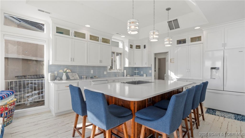 Welcome to luxury lakefront living in a peaceful subdivision in Gravois Mills, MO. With stunning lakeviews offered on every level. Perfectly positioned at the 2 MM of the Gravois Arm, this home offers panoramic lake views and coveted deep water-an ideal setting for year-round enjoyment at the Lake of the Ozarks. This beautifully designed three-level home offers at least one primary suite on each floor, providing privacy and comfort for guests across all levels. Thoughtful updates in 2024 enhance both functionality and style. The kitchen is a standout, featuring a massive island, custom cabinetry, quality appliances, and a built-in ice maker. A charming bar area tucked near the stairway. The main level offers balcony walkouts from both bedrooms, while the lower level showcases a gas fireplace and a walk-out deck for seamless indoor-outdoor living. Step outside to enjoy the hot tub, creating a private retreat with lake views. The property is complete with a large covered boat dock featuring two slips, two PWC lifts. Located just minutes down O road & close to the lakes most popular bars and entertainment, this home delivers the perfect blend of luxury, relaxation, and convenience.