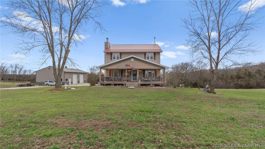 Escape to the quiet beauty of this classic Colonial style farmhouse set on 4 partially wooded acres. Blending timeless architecture with modern comforts, this 3 bedroom, 3 bath home offers spacious living, ample storage space, a full walk-out basement, & beautiful views in every direction. Enjoy relaxed mornings with a book and coffee on the covered front porch swing and peaceful evenings on the covered or open back deck, both perfect for taking in the scenic countryside. The property features an expansive detached 32 x 56 shop with two 12 x 12 garage doors, a large storage loft accessible by lift, 200 amp electric & water built in 2020. Also on the property is an additional 12 x 20 workshop with 100 amp electric, an attached 6 x 12 greenhouse and raised beds for year round gardening. A full RV hook-up with 30/50 amp electric and a dedicated drive grace the property. Conveniently located within easy reach of Jefferson City or the Lake of the Ozarks, this property blends country charm with modern convenience, great for gardening, hobby farming, or simply stretching out and savoring the privacy of the rural life. You have to see this home in person to appreciate its charm & beauty.