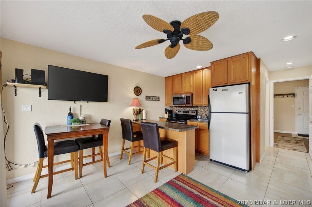Updated, clean, and affordable! This turnkey condo on the 21 MM of Lake of the Ozarks is ready for summer enjoyment or immediate rental income. Being sold fully furnished, the next owner can step right in with no work needed. The kitchen features ceiling-height cabinetry for extra storage, stainless steel appliances, and a full-size smooth-top stove. Enjoy the convenience of an in-unit stackable washer and dryer. Take in great lake views from this well-positioned unit. Located just minutes from shopping, dining, and entertainment, this property offers both convenience and lifestyle. Also included is a 10x24 boat slip on the community dock, adding both personal enjoyment and rental value. Community amenities include a boat ramp, boat trailer parking, pool, tennis courts, and spacious common areas. Perfect as a low-maintenance lake getaway or investment opportunity!